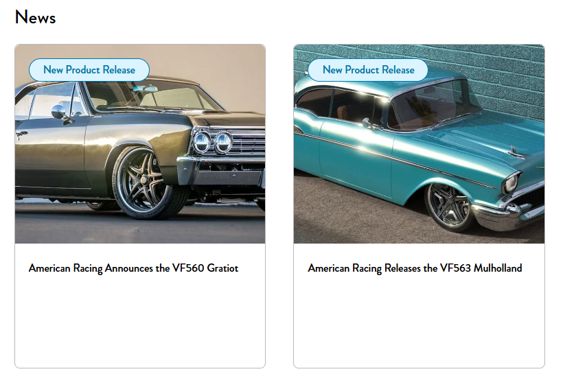 For a general view of all new wheels regardless of application, select the "News" tab at the top of the website. This section highlights our most recent product releases and updates.